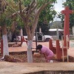 Trabajadores del Departamento de Parques y Jardines del Ayuntamiento de Oxkutzcab continúan con las labores de mantenimiento en los espacios públicos de la localidad, trabajando en la blanqueada de troncos de los árboles de áreas verdes de parques y avenidas.